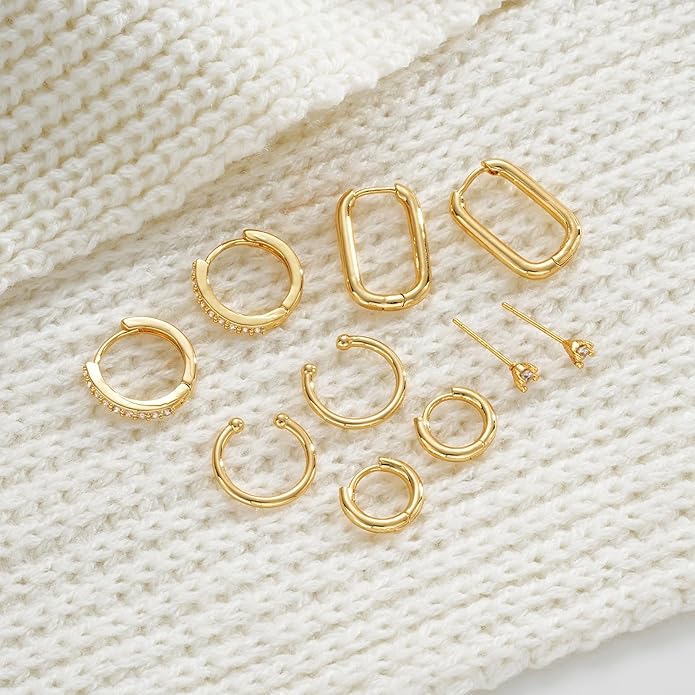 - Earrings for Women: This gold earrings set provides 4 different styles and designs,including classic zirconia hoops, small huggie hoops and chunky open to choose from.You can easily find your perfect match,catering to various wearing preferences.