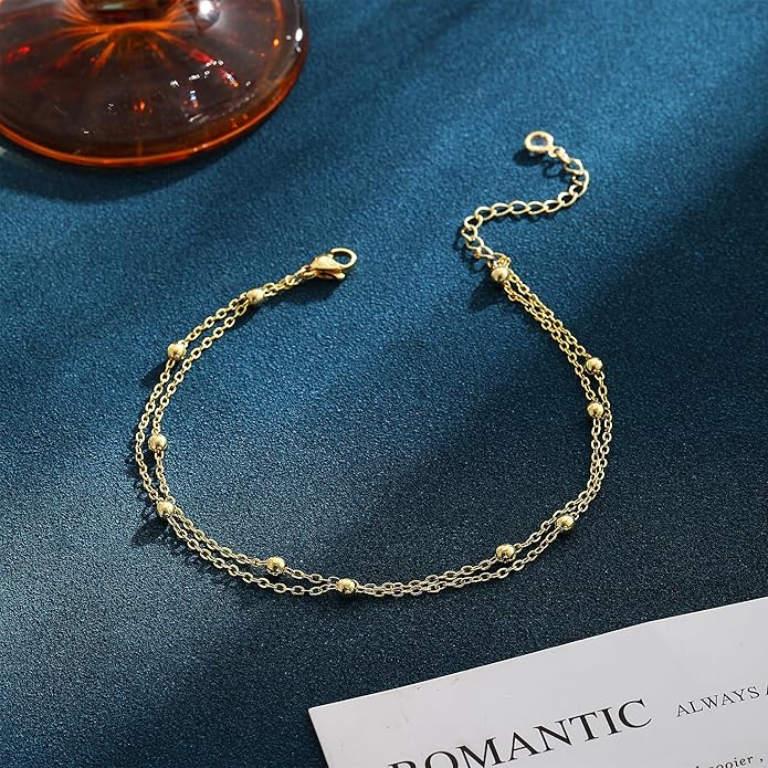 - Stylish Beaded Look: This gold anklet boasts a trendy beaded design, ideal for layering, with a water-resistant finish for lasting wear