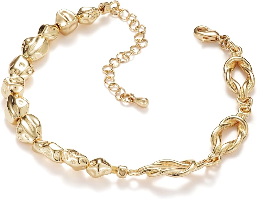 14K Gold Bracelets for Women, Love Knot & Organic Shape Bead Bracelets, Small Wrist Waterproof Gold Plated Toggle Bracelet, Modern Statement Jewelry Gifts for Women Mother Daughter