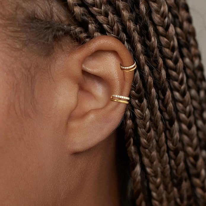 - Cartilage Double-Hoop Earrings For Women: The cartilage earrings includes 4 pairs small hoop earrings, inlaid with many cubic zircons, two different colors, gold color and silver are available