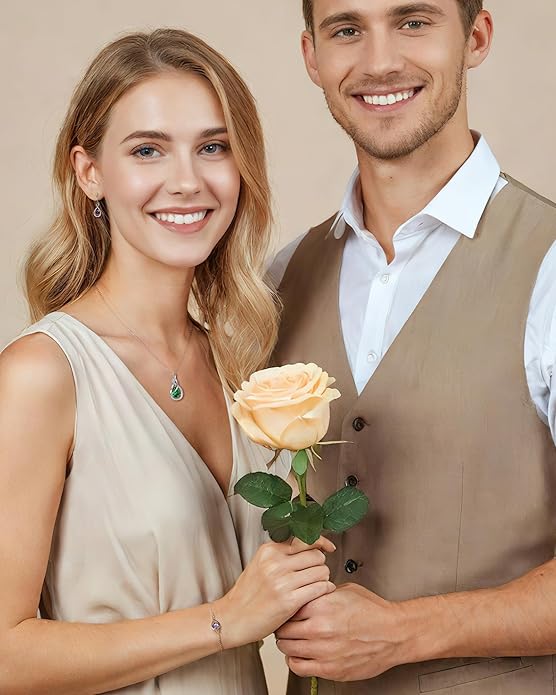 - ❤May Birthstone Jewelry❤ This TimelessTie necklace is inlaid with stunning and shining gem-quality 5A cubic zirconia, with a simulate emerald in the center of the pendant. Emerald is the May Birthstone, Represents love and life. It is also the stone given to celebrate the 55th wedding anniversary.