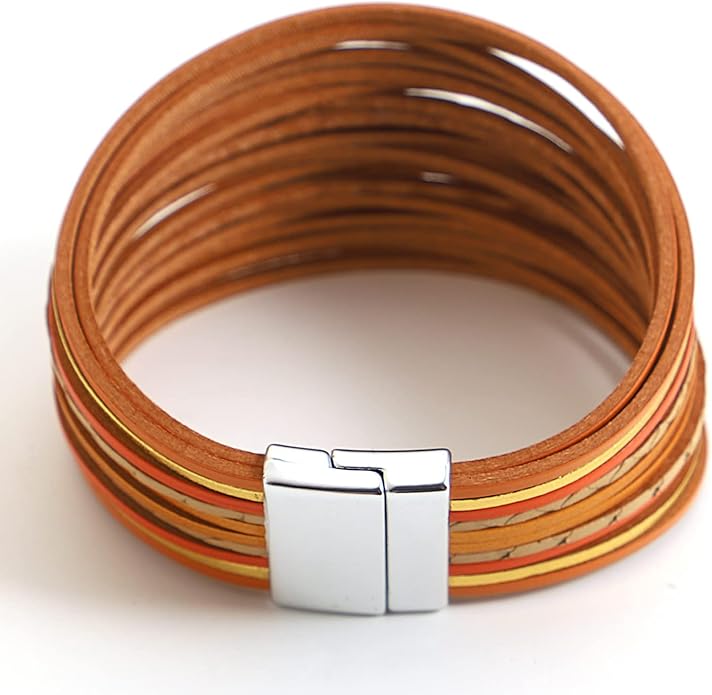 - 【SUPERIOR QUALITY】 Our Leather Cuff Bracelets is carefully crafted by handmade with environmental leather and high-grade alloy clasp to ensure you get a durable and exquisite bracelet. Stranding with premium accessories makes this wrap bracelets looks gorgeous and trend appearance, it will satisfying your taste in fashion.