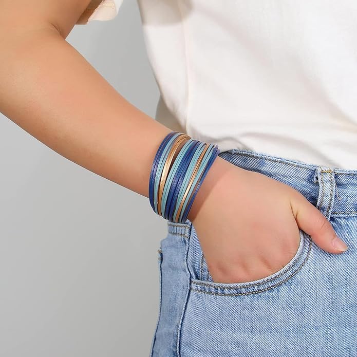 - 【SUPERIOR QUALITY】 Our Leather Cuff Bracelets is carefully crafted by handmade with environmental leather and high-grade alloy clasp to ensure you get a durable and exquisite bracelet. Stranding with premium accessories makes this wrap bracelets looks gorgeous and trend appearance, it will satisfying your taste in fashion.