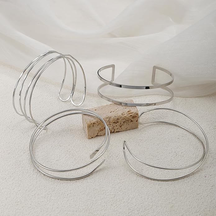 - Gold Arm Cuffs Set:One order includes 4 pieces coil upper arm bangles in one style. Minimalist design, adding a subtle charm to any of your clothing, very unique and charming.
