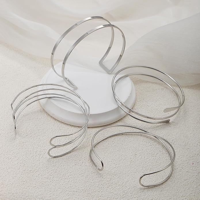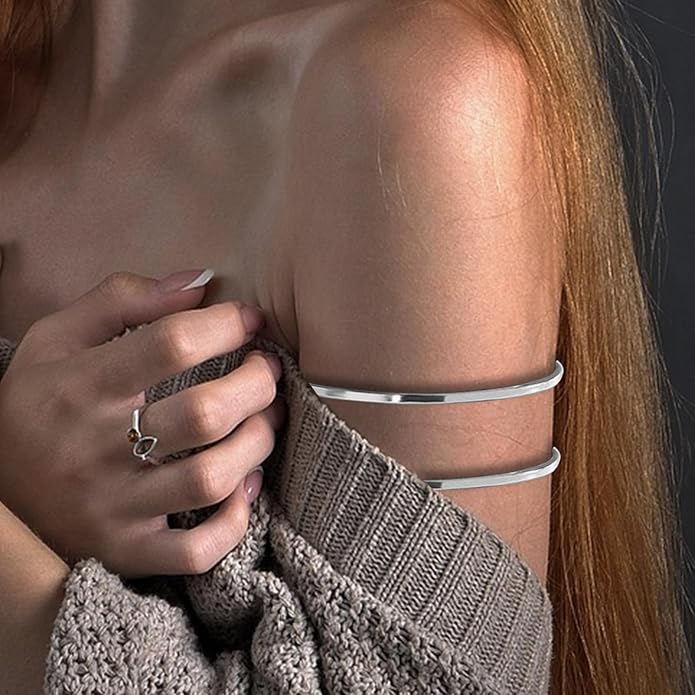 - Arm Cuff Bangle Adjustable:The upper arm cuff bracelet is approx. 8cm/3.15in, they’re open and can be adjusted to fit most arms of women, no worry about the fitting.No clasp needed - simply slide on and adjust for a secure, comfortable fit.