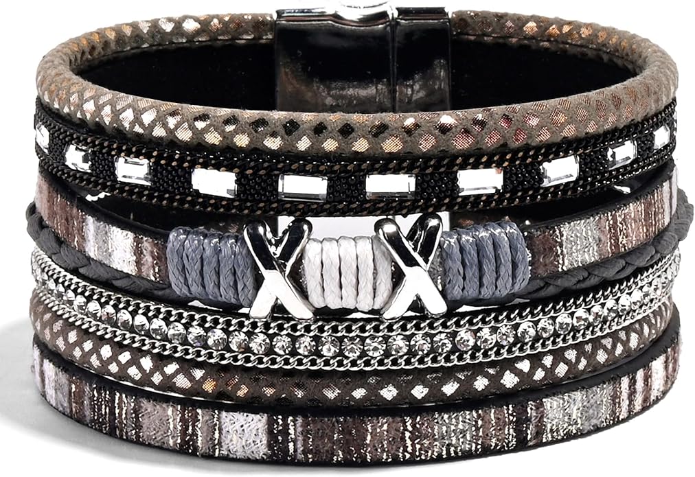 VIBILIA Boho Leather Wrap Bracelets for Women Multi-Layer Bracelets with Strong Clasp Jewelry for Women