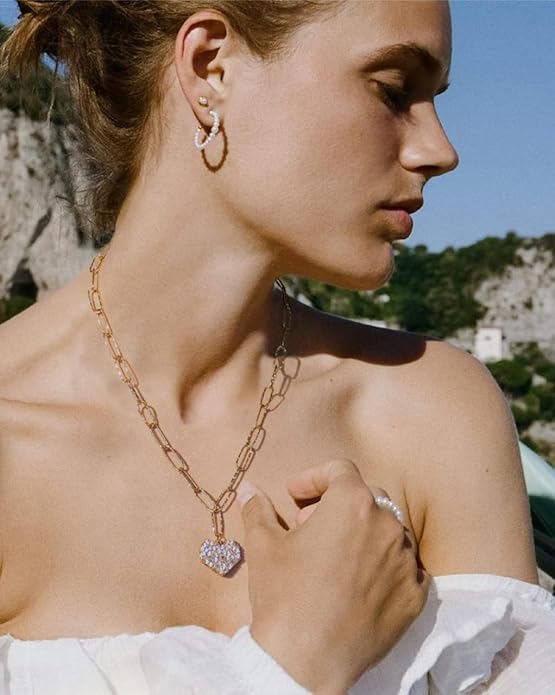 - Design: The 0.8*1 - inch heart pendant, designed in a floating style, steals the show, making it a true heart chain necklace. Adorned with cubic zirconia, it sparkles like a diamond heart necklace, exuding elegance. The textured paperclip chain, a highlight of this charm necklace for women, pairs harmoniously with the heart pendant, keeping up with the latest fashion trends. It's sure to attract attention and is a perfect choice for those looking for trendy necklaces for women.