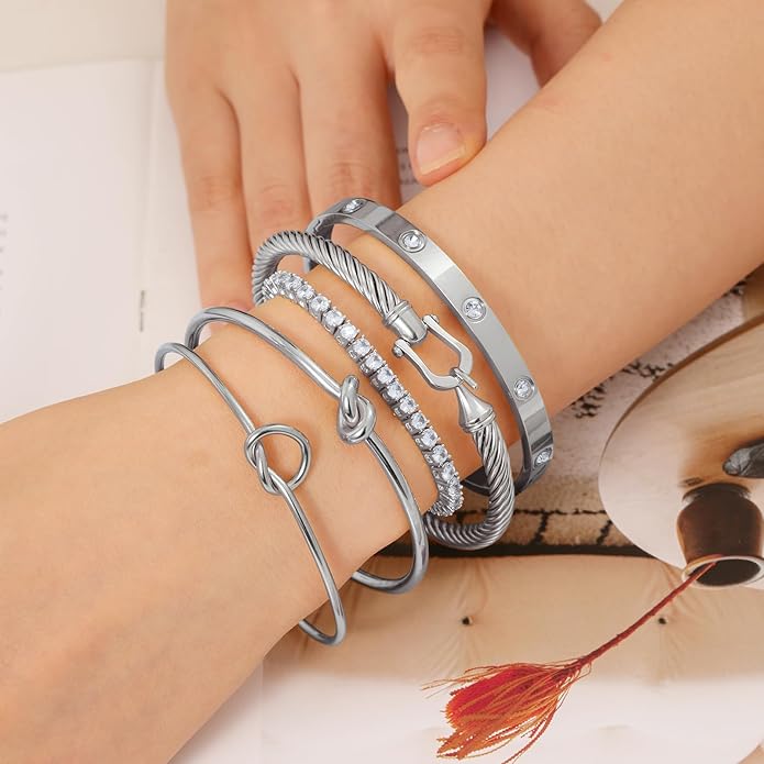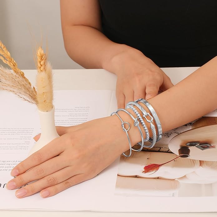 - Elegant design: Whether worn individually or in combination, this well-matched bracelet set is always stylish and unique, and perfectly adds a touch of glamour to any outfit.