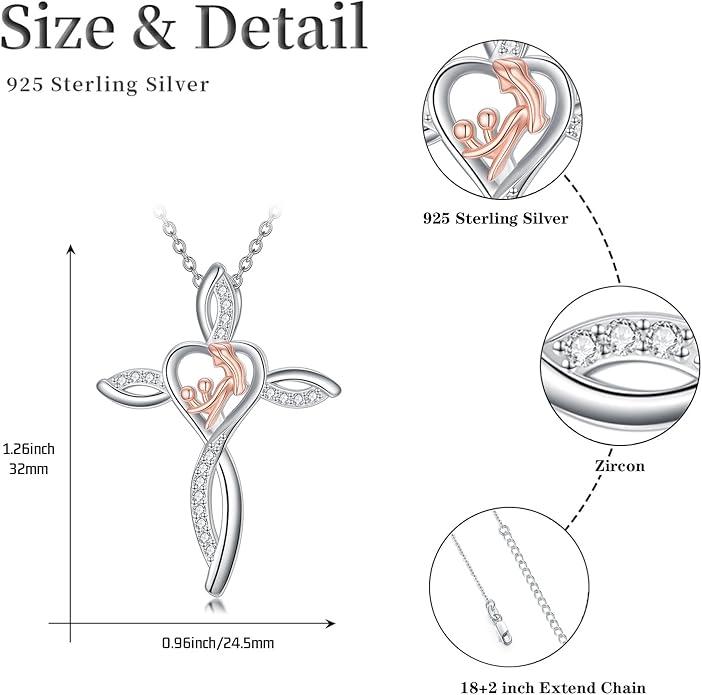 - SILVER MOTHER JEWELRY SIZE: The sterling silver mother son gifts size: 18inch+2inch, the length of the necklace can be adjusted according to personal circumstances; The christian cross pendant size: 24.5mm(0.96inch)*32mm(1.26inch)