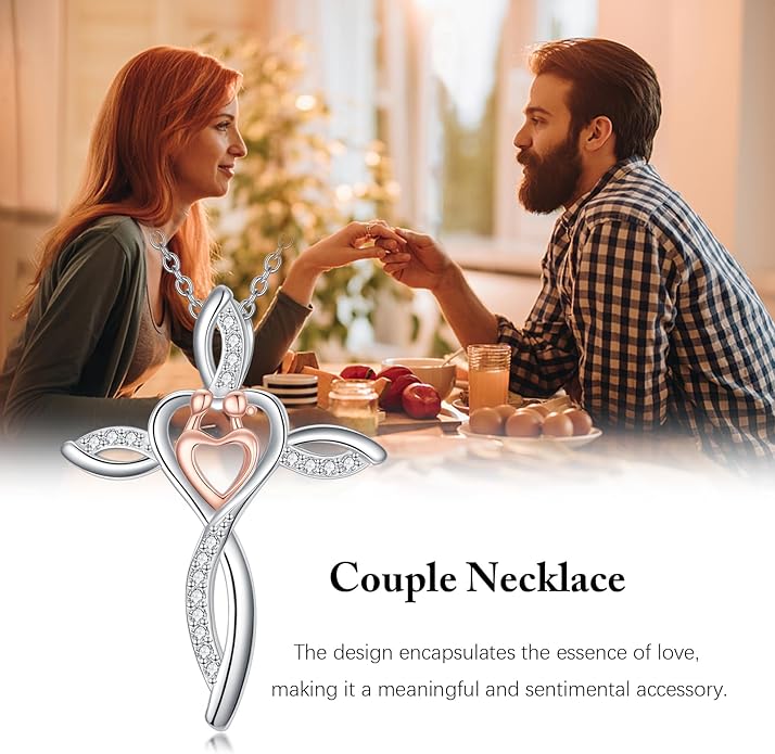 - CROSS COUPLE NECKLACE: Cross symbolises love and salvation and can bring unlimited good luck. This necklace combines cross with man and wife, representing the unity and prosperity of a family. Perfect as a Mother's Day gift for your mother, wife, daughter and friends