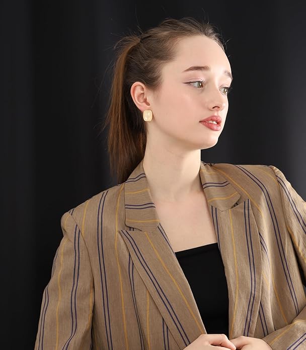 - DESIGN: These rectangle bezels set studs earrings are the perfect addition to any jewelry collection. The unique set of Abalone resin stones on premium quality plated with 14k gold tone.