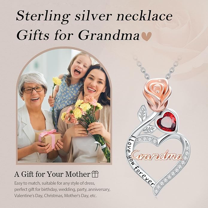 - MOTHERS DAY NECKLACE: Roses can be a way to express love, respect and gratitude to your grandma. This necklace combines "Grandma" and roses and is engraved with the words "I love you forever" to express your deep feelings. It is very suitable as a Mother's Day gift for your grandma, family and friends