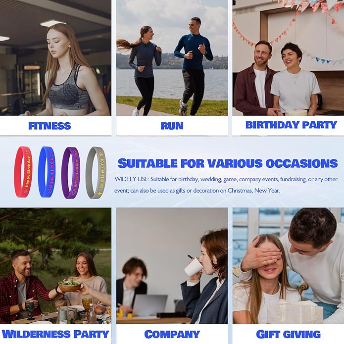 - SUITABLE FOR MULTIPLE OCCASIONS: Personalized silicone wristbands are ideal for everyday wear and to show your support. Great for birthday parties, anniversaries, anniversaries, weddings, memorials, sporting events, cancer awareness, autism awareness, inspirational quotes, fundraisers, graduations, expressions of well wishes and love, and more.