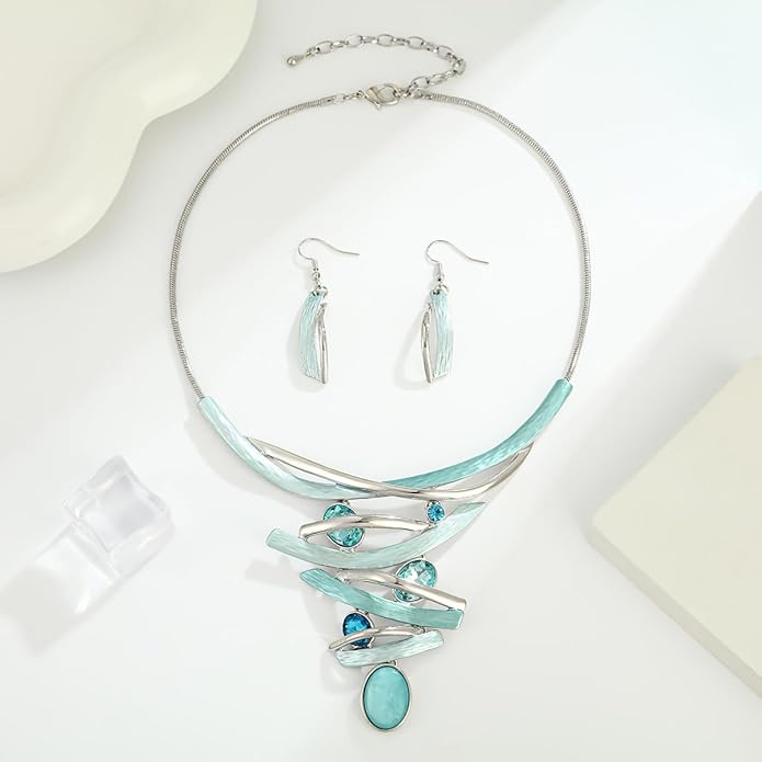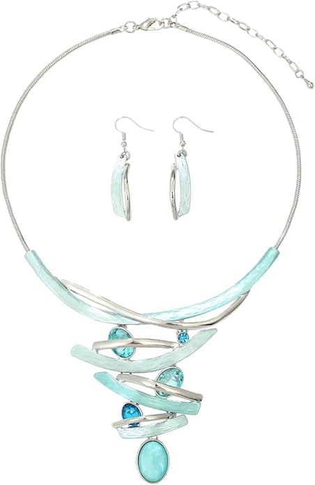 - Environmental Materials: Necklace Length -16.5’ +3.2’ (42+8 cm) Adjustable.Women's daily dressing jewelry collection. These bib statement necklace earring sets are made with crystal, rhinestones, gemstones, resin, Enamel or acrylic with environmental zinc metal button. Hypoallergenic. Hot jewelry.