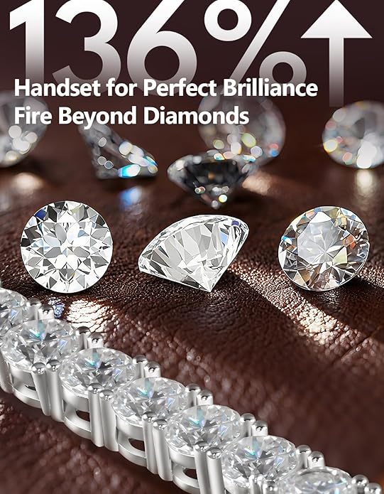 - 【Lab-Grown D Color VVS1 Moissanite with Radiant Fire】 Lab-created Moissanite tennis bracelet features RadiantGlow-Cut technology for dazzling brilliance and higher refractive index than others – ethically sourced, conflict-free, eco-friendly, crafted for eco-conscious luxury