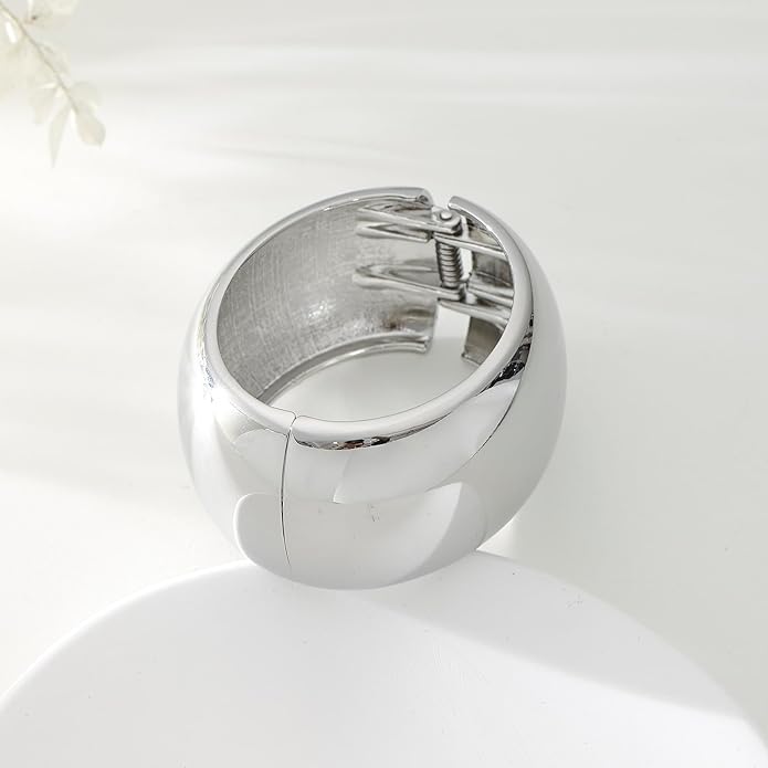 - Silver Plated Bangles for Women: This bold silver plated arm cuff features an inner circumference of 18cm / 7inches and a hinged closure design, making it easy to put on and take off. Whether dressed up or down, stacked or worn solo, its endless styling possibilities make it the perfect staple for any occasion.