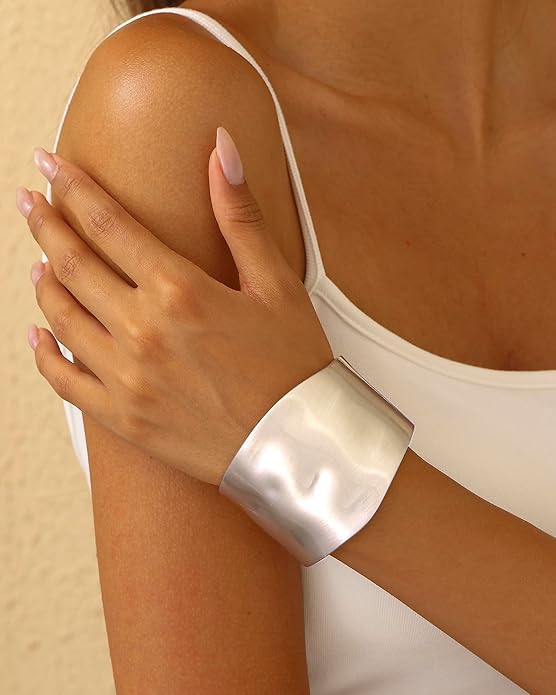 - Silver Plated Bangles for Women: This bold silver plated arm cuff features an inner circumference of 18.5 cm / 7.28 inches and a hinged closure design, making it easy to put on and take off. Whether dressed up or down, stacked or worn solo, its endless styling possibilities make it the perfect staple for any occasion.