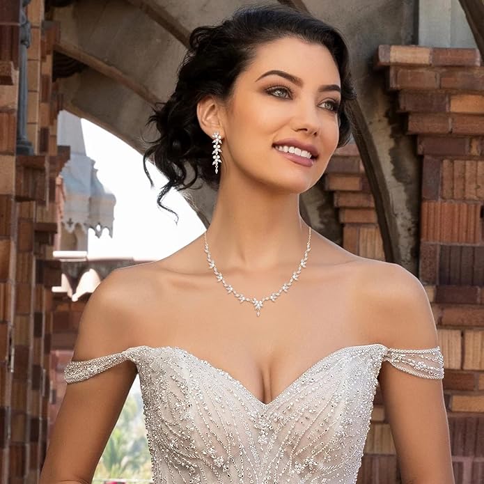 - Size:44.5cm(17.52")-48.5cm(19.09"), Earring Size:4.9cm(1.93")by1.1cm(0.43") Pendant Size:19cm(7.48")by2.2cm(0.87") Total Weight:20g Stone Color: White Gold-Tone