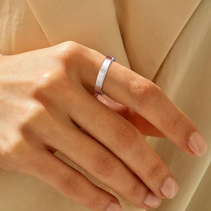 - Design: 2mm 4mm 6mm wedding rings for men and women. Silver plated color, high polish finish, classic flat design, beveled edges, comfortable dainty simple ring