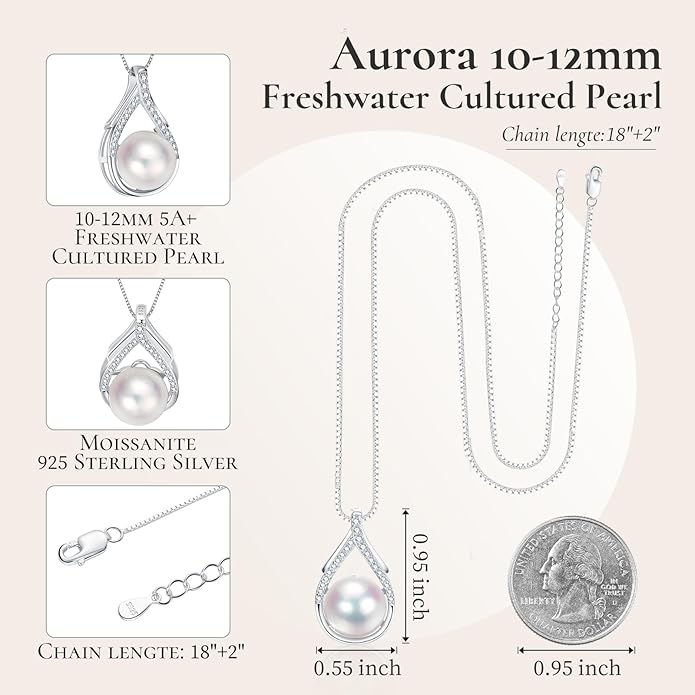 - Pearl Necklace - Handpicked AAAAA+ Freshwater Cultured Pearl Necklace, This gorgeous one pearl necklace for women is made with a beautiful high luster 10-12 mm freshwater pearl ,one bead with good luster, quality, color and cleanliness for this pearl pendant necklaces. This versatile Genuine freshwater pearl necklace is Subtle and Simple,– no treatments, no imitation, just authentic beauty. The pearl's color will not fade over time. Platted with luxurious 18K white gold , inlay Moissanite.The pendant is made of 925 sterling silver and does not tarnish over time.Comfort for sensitive skin.Creating the best real pearl necklaces for women it’s perfect for everyday wear or a night out.