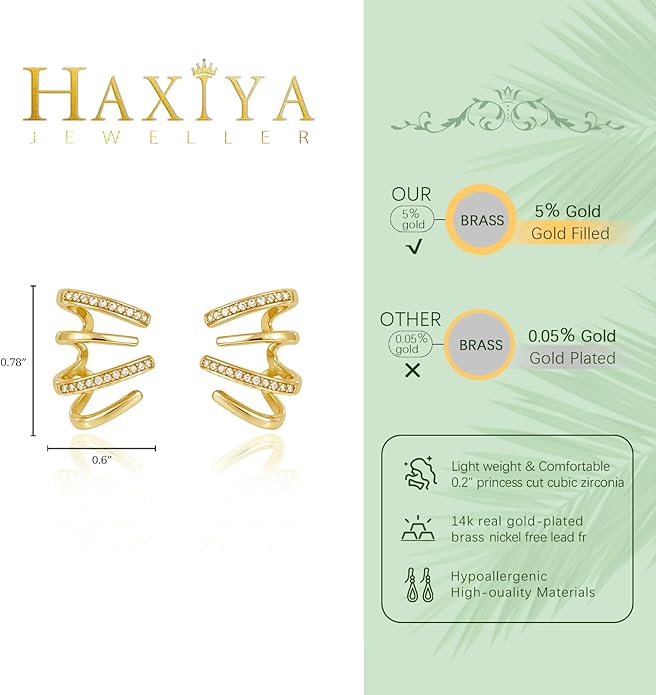 - ❤Ear Wrap Piercing Earrings Material: Waterproof gold claw earrings, hypoallergenic brass with 14K gold plating, long-lasting shine, nickel/lead-free. High-quality cubic zirconia. All-day comfort, exceptionally shiny.