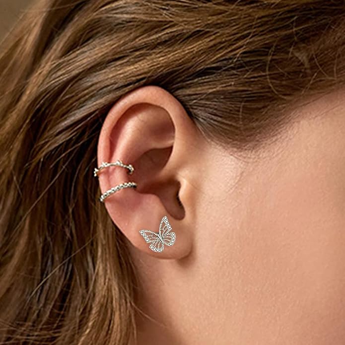 - Size - Silver plated tennis necklace: 2mm width, 14"+2" adjustable length, lobster clasp. Butterfly earrings: 0.4". Perfect for any occasion.