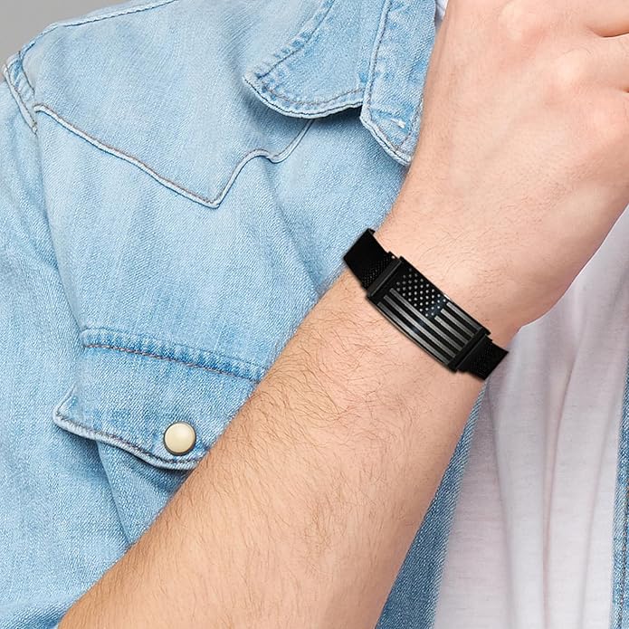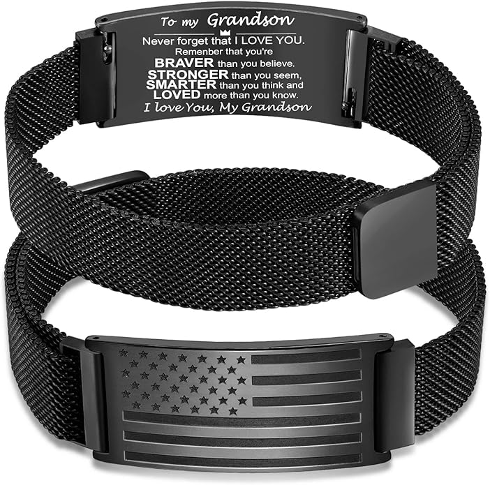 - 【Best Gift for Grandson】This men's bracelet artfully combines faith and fashion, featuring a eye-catching American Flag on the front and the warm word “To My Grandson” engraved on the back.A great gift for your GRANDSON.