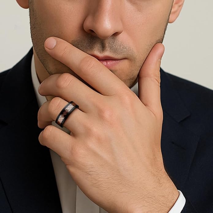 - Wide Range of Sizes and Comfortable Fit: Our male wedding bands are available in a wide range of sizes, from 6 to 12, ensuring a suitable fit for your finger. Additionally, we offer detailed measurement and sizing charts to help you make the right choice. You can confidently find the ideal whiskey barrel ring to suit your style and ensure a comfortable fit