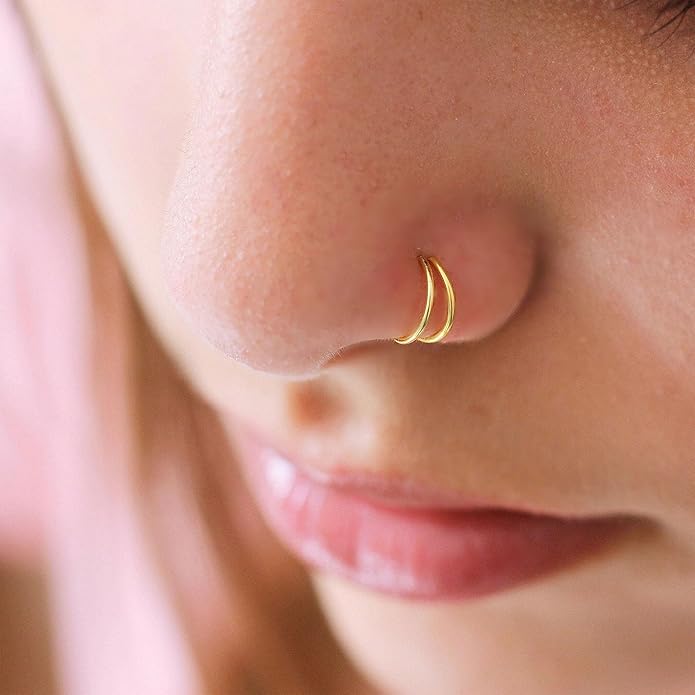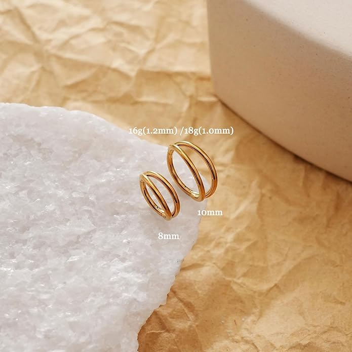 • Unique Design: The double-hoop design brings a layered look, and each earring is inlaid with many cubic zircons, so you can be eye-catching whether it is used for cartilage earrings or nose rings