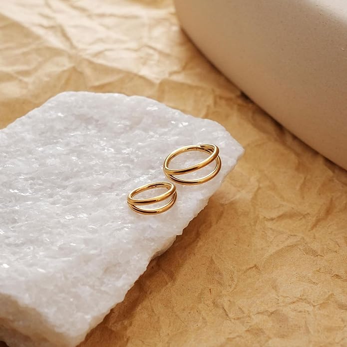 2 PCS Small Cartilage Double-Hoop Helix Conch Piercing Earrings With Cubic Zirconia For Women Trendy 14K Gold Plated Titanium Surgical Stainless Steel Sets Jewelry