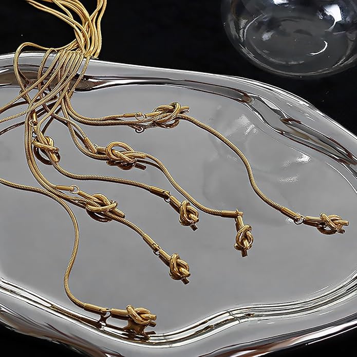 - [Lariat Necklace] This gold drop necklace features a striking knotted rope pendant, creating a simple yet stylish jewelry in the shape of Knotted Rope Design. The wearing of Knotted Rope jewelry is thought to elegant and uninhibited personality, and protection; Lariat necklace is not only a beautiful and meaningful gift, but also elegant and uninhibited personality