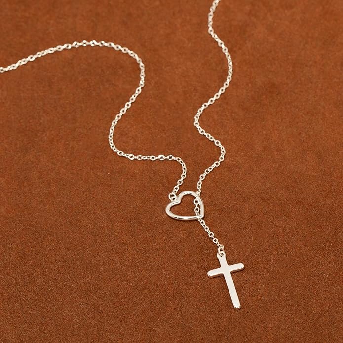 - Lariat Necklace for Women Design: This elegant silver lariat necklace features a cross pendant that drapes gracefully along the neckline, creating a chic and elongated effect. Perfect on its own or layered with other necklaces, it adds a refined touch to any outfit.