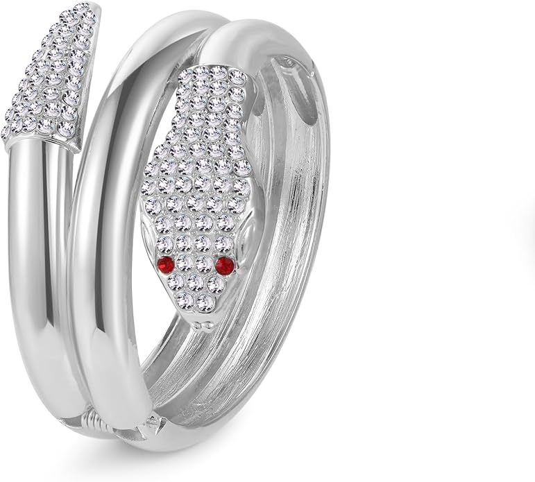 - Silver Plated Bangles for Women: This bold silver plated arm cuff features an inner circumference of 18cm / 7inches and a hinged closure design, making it easy to put on and take off. Whether dressed up or down, stacked or worn solo, its endless styling possibilities make it the perfect staple for any occasion.