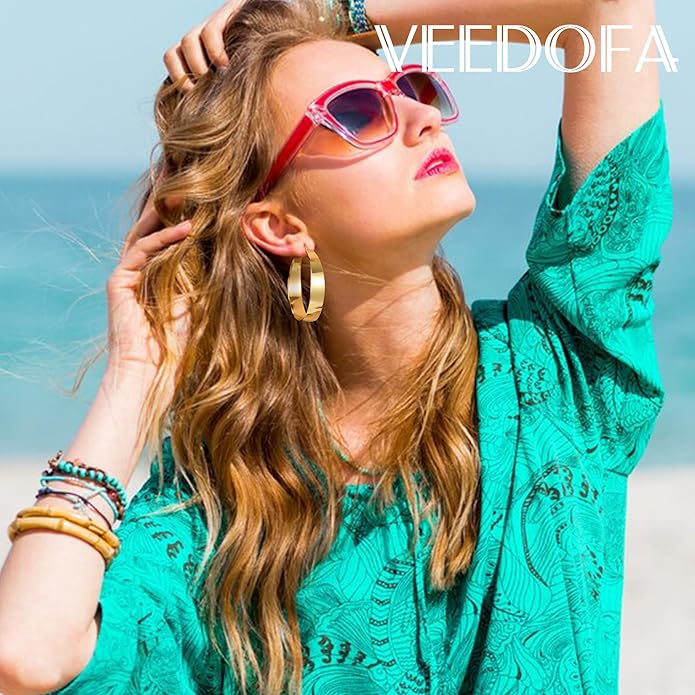 - 【 Wide Gold Hoop Earrings for Women】These stylish women's wide hoop earrings feature a sleek 'narrow-to-wide' gradient design that effortlessly draws attention. The smooth, tapered silhouette suitable complements your face shape while showcasing your unique personality. Whether for everyday wear or special occasions, these large gold hoop earrings can add a touch of distinctive charm to your overall look.