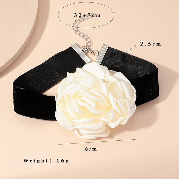- Size: The length of the velvet flower necklace is 32 cm / 12.59 inches, and the extension chain is 7 cm / 2.75 inches. It can be adjusted according to the neck size. The diameter of the flowers is 8 cm / 3.15 inches, and the weight is 16 g