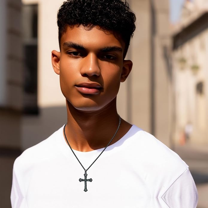 - Black Cross Pendant Material: Black cross necklces for men is made of 925 sterling silver, ensuring its glossiness and durability, hypoallergenic and safe for sensitive skin, inlaid with abalone shell is sparkling. The intricate detailing and sleek finish make them a standout accessory for any occasion