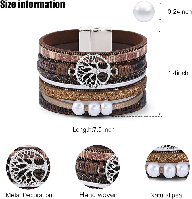 VIBILIA Boho Leather Wrap Bracelets for Women Multi-Layer Bracelets with Strong Clasp Jewelry for Women