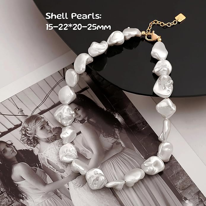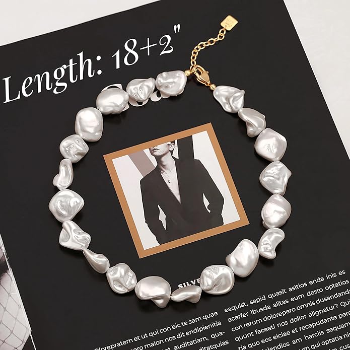 - 1.Style: Elevate your style with this stunning baroque pearl necklace, featuring uniquely shaped faux pearls that radiate a natural, sculptural beauty. Its bold, irregular design adds a contemporary twist to the classic pearl necklace, making it the perfect statement necklace for women who love to stand out.