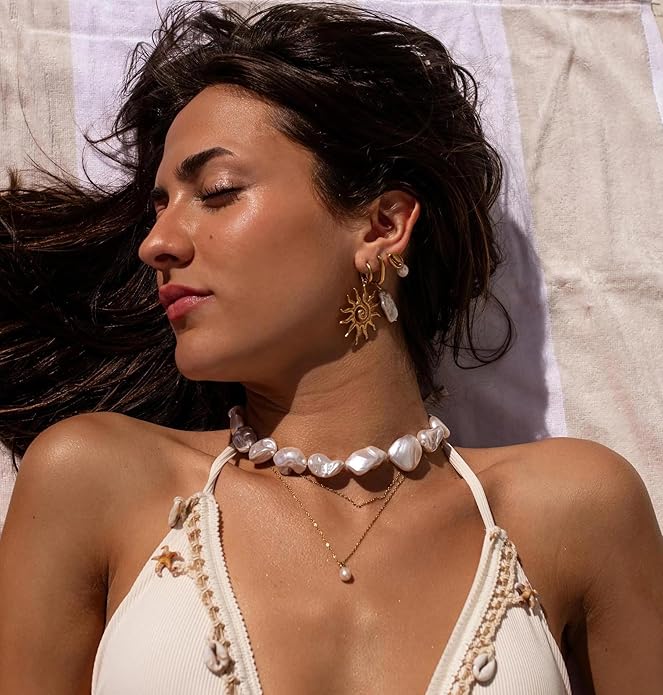 - 2.Versatility: Designed as both a pearl choker necklace and an adjustable accessory, this piece effortlessly transitions from casual daytime looks to elegant evening wear. Its chunky yet sophisticated aesthetic is ideal for layering with other boho necklaces for women or wearing solo for a bold, minimalist statement.
