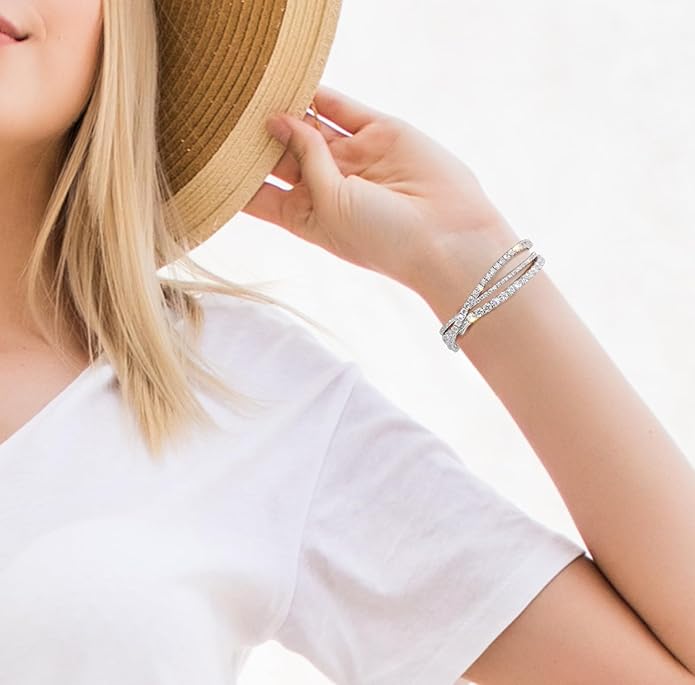 - 【SNAP-ON & FORGET SECURITY】Patented GlideLock clasp snaps with one hand, locks twice. 44 stones flex with your moves—𝐓𝐞𝐬𝐭𝐞𝐝 𝐨𝐧 𝟓𝟎𝟎+ 𝐭𝐞𝐧𝐧𝐢𝐬 𝐬𝐰𝐢𝐧𝐠𝐬, 𝐳𝐞𝐫𝐨 𝐬𝐧𝐚𝐠𝐬 & 𝟑𝟔𝟎° 𝐝𝐚𝐳𝐳𝐥𝐞 𝐠𝐮𝐚𝐫𝐚𝐧𝐭𝐞𝐞𝐝.