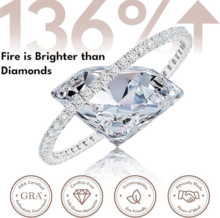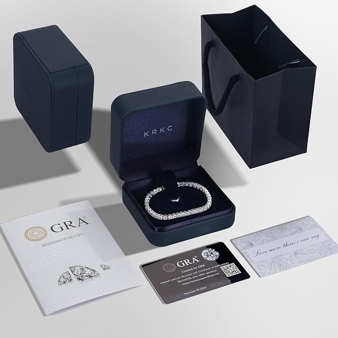 - 【SPARK 2.5X BRIGHTER THAN DIAMONDS】Lab-created D Color VVS1 Moissanite with RadiantGlow Cut outperforms diamonds in fire & brilliance. Ethically grown in KRKC labs—zero mining, 98% less water used. KRKC moissanite tennis bracelet is a good choice for replacing expensive diamond tennis bracelet.