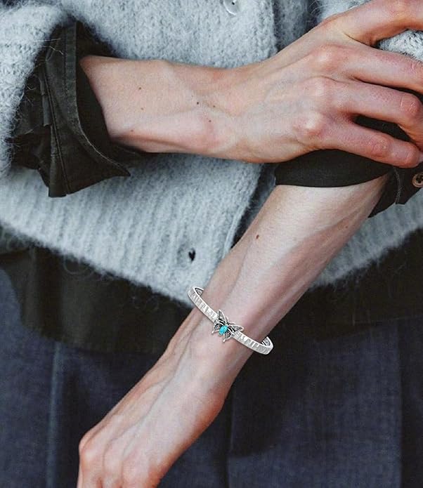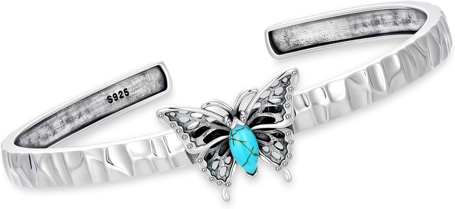 Genuine Turquoise Butterfly Bracelet, Sterling Silver Native American Adjustable Boho Bangle Cuff Jewelry for Women, Fit for 6.5 7 7.5 Inches