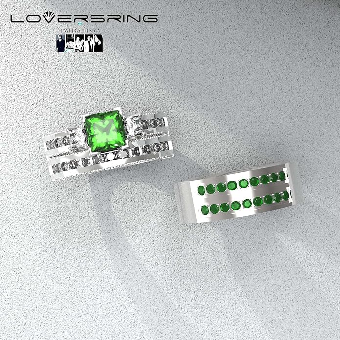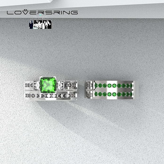 - WOMEN'S RING: 925 Sterling Silver Square cut cz 3 pieces wedding engagement ring set.Paved with aaa+ clear sparkling cubic zirconia stones.No stone fall out. .Womens Sizes AVAILABLE: 5 6 7 8 9 10