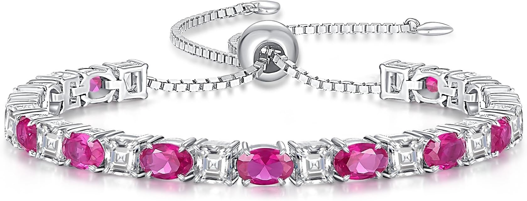 Sterling Silver Birthstone Bracelets for Women White Gold Tennis Bracelets Adjustable Chain 6-9 Inchs Jewelry Hypoallergenic Anniversary Birthday Gifts for Women Mom Wife Her
