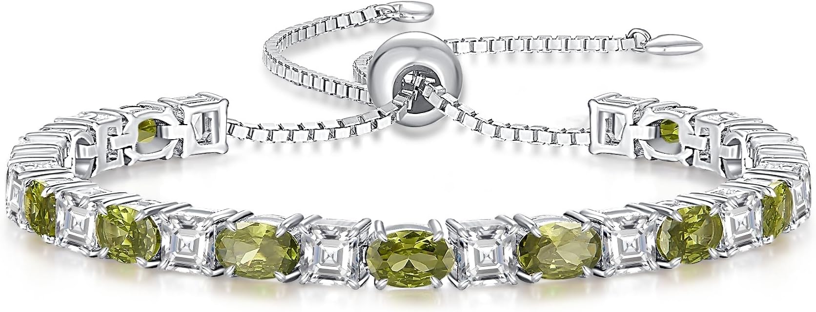 - Premium Material & Exquisite Design: Crafted with white gold filled sterling silver,the crystal bracelet offer the brilliance of white gold with the durability of sterling silver, ensuring long-lasting luster and hypoallergenic comfort. The birthstones on the silver bracelet features an elegant alternation of elliptical Asscher Cut and oval cut, meticulously arranged to catch light from every angle, while the heart charm on the extension chain adds a sweet touch of love and connection.