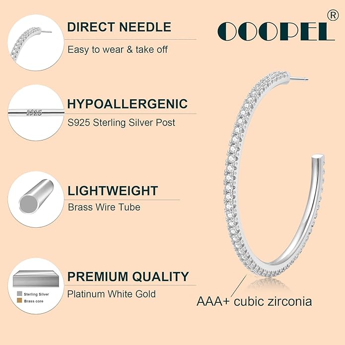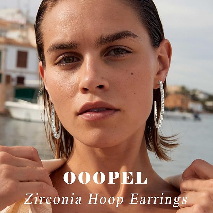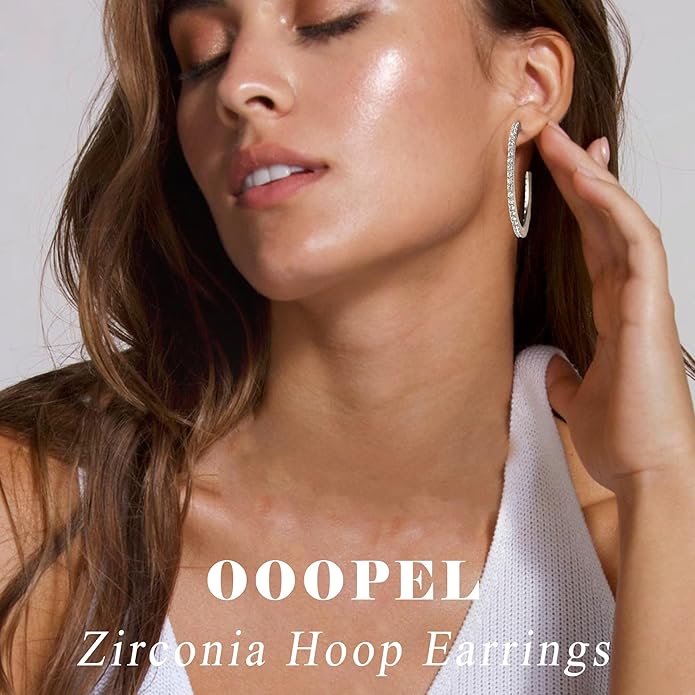 - LIGHTWEIGHT STERLING SILVER HOOPS:Classic sparkly rhinestone hoop earrings are a great statement piece for any outfit, All eyes are sure to be on you when you accessorize with OOOPEL hoop earrings featuring large silver hoops with shimmering rhinestone detailing.