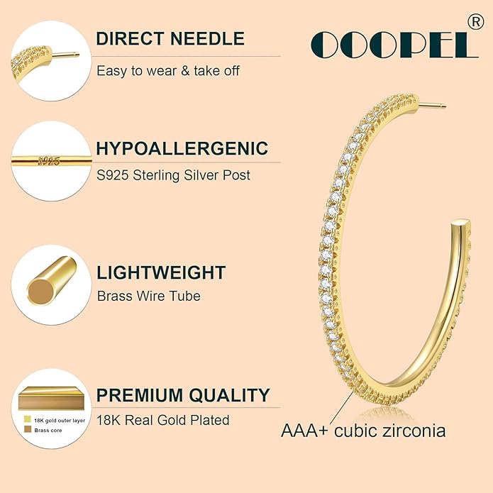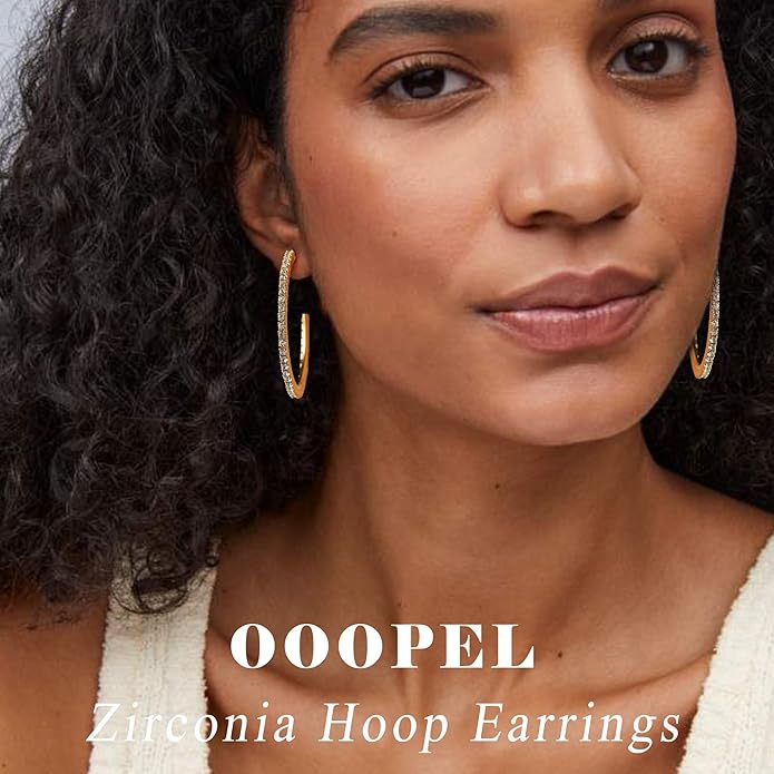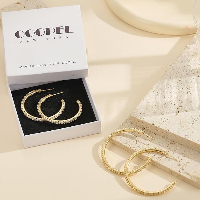 - LIGHTWEIGHT STERLING SILVER HOOPS:Classic sparkly rhinestone hoop earrings are a great statement piece for any outfit, All eyes are sure to be on you when you accessorize with OOOPEL hoop earrings featuring large silver hoops with shimmering rhinestone detailing.