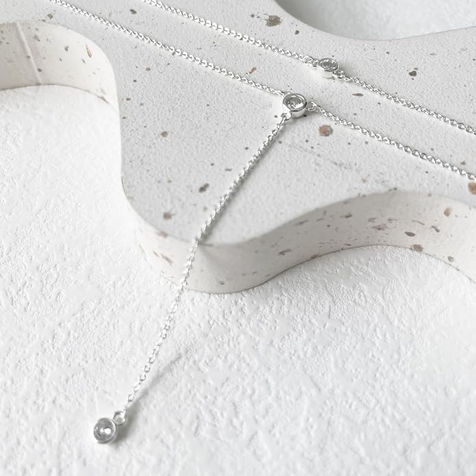- Silver Lariat necklace design: This long silver necklace is a simple choice for everyday wear. The layered choker necklace and Y-shaped necklace is paired with sparkling CZ diamonds to create a luxurious and elegant visual effect.
