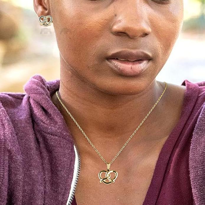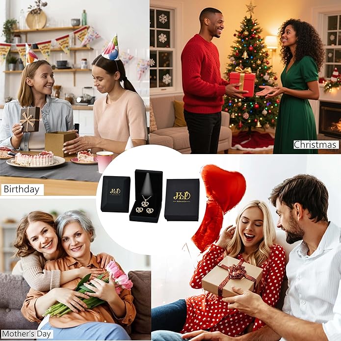 - Stylish & Complete Set features a delicate 18k gold plated necklace (adjustable 15.75" 16.75" 17.75") + matching stud earrings (0.71"x0.56").Perfect for stacking or minimal chic