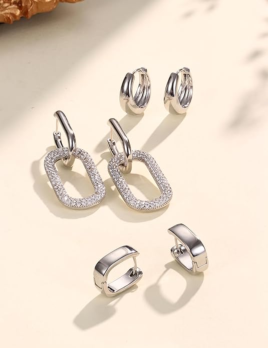 - Gold Hoop Earrings for Women: You will get 3 pairs chunky gold earrings of different styles, classic chunky hoops, dangle gold hoop earrings with pave, small square hoop earrings with link dangle hoops, thick hoop earrings. Elegant and fashion 14k gold hoop earrings, suitable for any occasions. Can be worn alone or stacks with other cute earrings to meet your DIY needs and give you a fresh look every day.